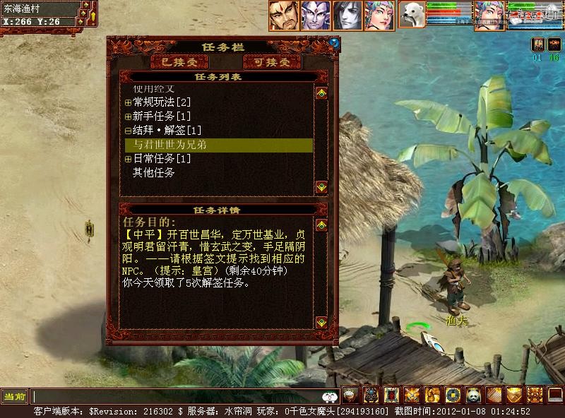 结拜任务推出很久了,我也几乎天天做 ,所有的任务都做过了,一直忘了截图,前不久一个朋友问我怎么做,我才想起来应该做个帖子,让没有做过的朋友都分享下,就开始截图,到昨天晚上为止,除了南极仙翁的任务一直没有遇到过,其他的都遇到了。因为任务是随机的,所以我也等不及了就把做过的先给大家发上来,供大家分享,会的就别看了,谢谢!