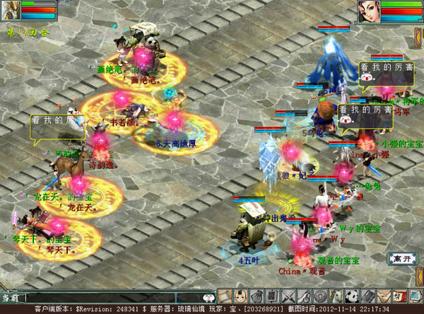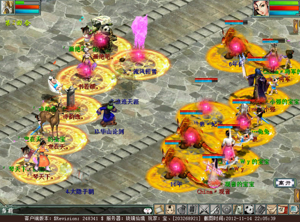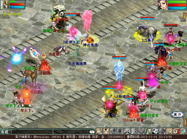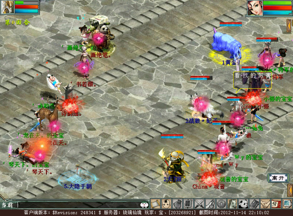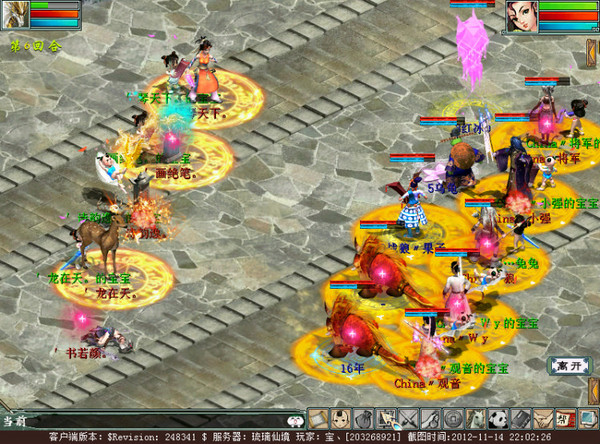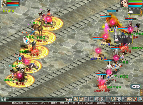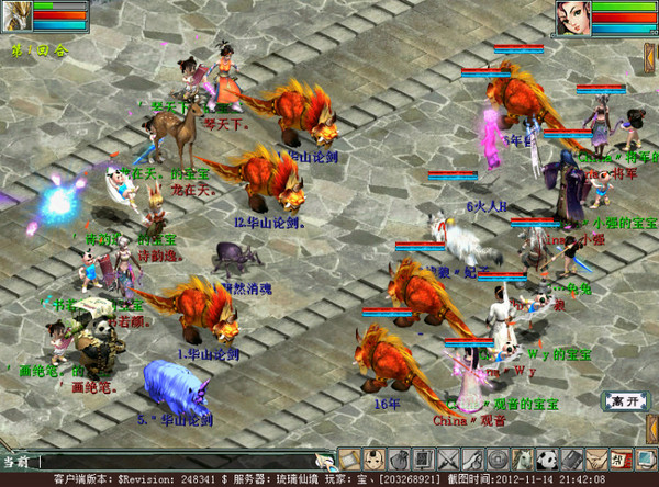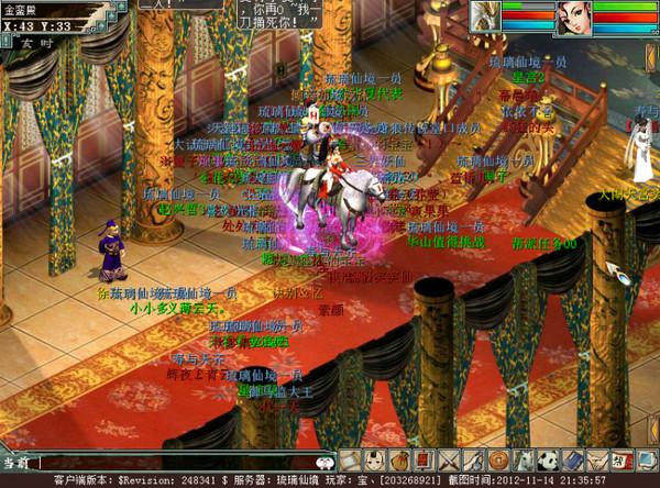 最近琉璃仙境的皇宫很火11月13日,从华山论剑移民到琉璃仙境的一支队伍在皇宫和琉璃仙境进行了一场友谊赛其中第5场和China家族的对决相当的精彩终极技能,华丽的套装,以及那点满的天赋大招。几次差点翻盘和被翻盘相关链接:琉璃仙境持续的激情、移民PK——华山论剑VS琉璃仙境14日的2