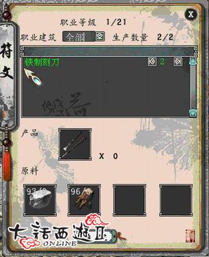 PS:铁制刻刀、墨水等一些画符的工具的制作是不需要画符,当材料足够时,直接点击确定便可产出。