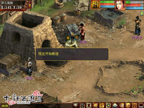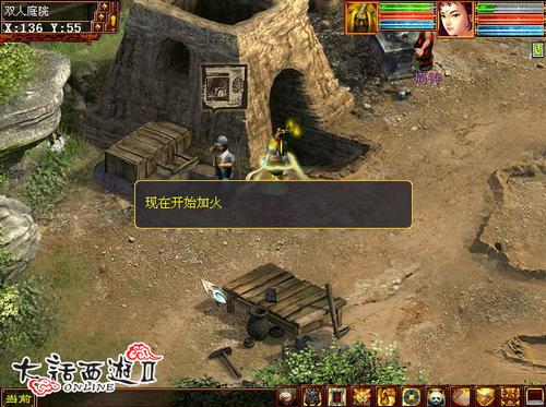 开始冶炼之后,可不是在一旁闲逛风景就可以了哦,现在你就是要把这些矿石冶炼出来的工匠。炉子没有温度可冶炼不了,所以首先点击李熔开始加火。