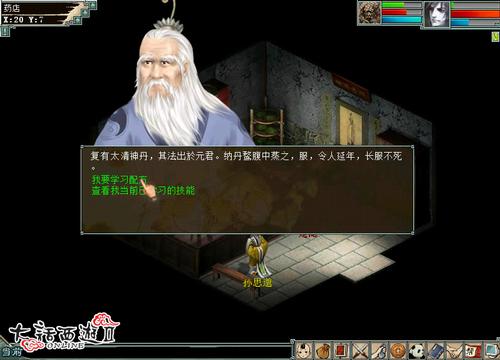 加入职业后,就可以去洛阳(161,154)附近的药店里找到孙思邈学习配方。