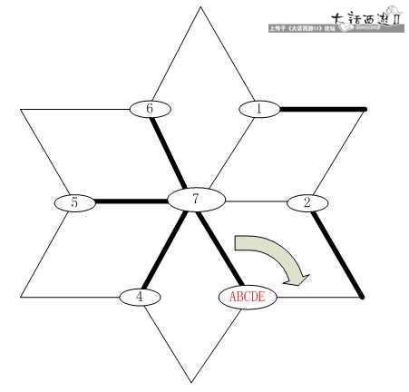 7点是BOSS,最外围的角没有标识,简单以16、12、23、34、45、67为准;