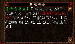 十五日凌晨0点小羽溜进测试服务器水榭歌台计划提前体验一把五一任务.昨天的采集任务小风已经做了详细的报道!今天我就来说下传递圣火任务的流程吧!