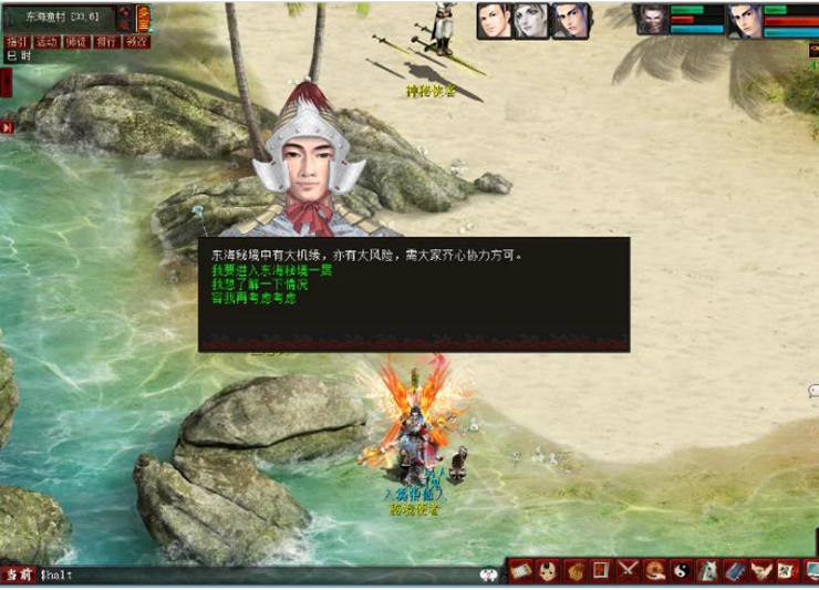 1、大家可组队前往东海渔村(33,6)处找秘境使者进入东海秘境。