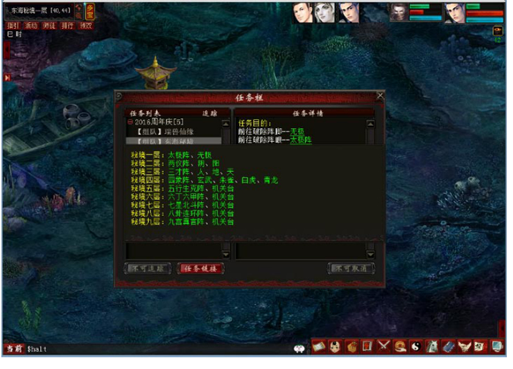 2、东海秘境共用九层,需从一层开始,闯过各层的阵法后才能进入下一层。