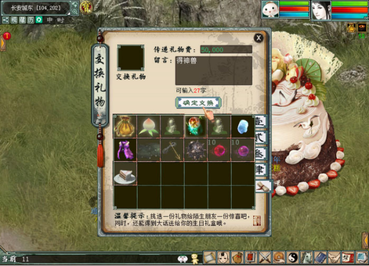 3、同生日蛋糕对话还可以选择给予交换礼物,给出交换礼物之后,自己也将获得一份大话西游送的礼物。